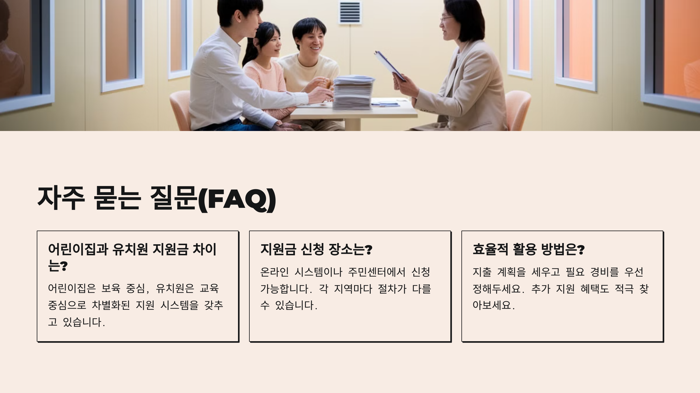 마지막으로, 지원금에 대한 오해를 짚고 넘어가야 합니다. 일부 부모님들은 지원금을 받으면 더 이상 필요 없는 경비가 있다고 생각하기 쉽습니다. 하지만 지속적인 교육비 지출이 필요합니다. 맞벌이 가정 필수! 어린이집·유치원 지원금 200% 활용법에서 강조하는 것은, 지원금이 생활의 부담을 덜어줄 수는 있지만, 궁극적으로는 아이의 교육과 성장에 최선을 다할 필요가 있다는 점입니다.